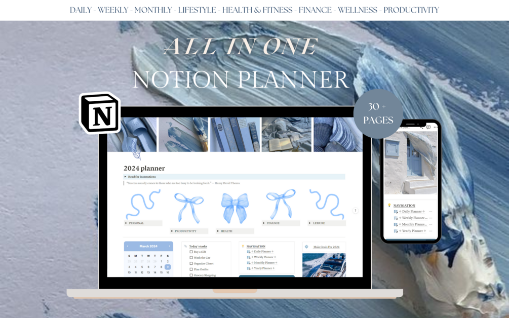 Introducing the All-In-One Notion planner - where aesthetic design meets functionality! Whether you're setting goals, tracking your lifestyle, or just staying organized, this planner has you covered. Access and personalize effortlessly across devices to keep your life on track.