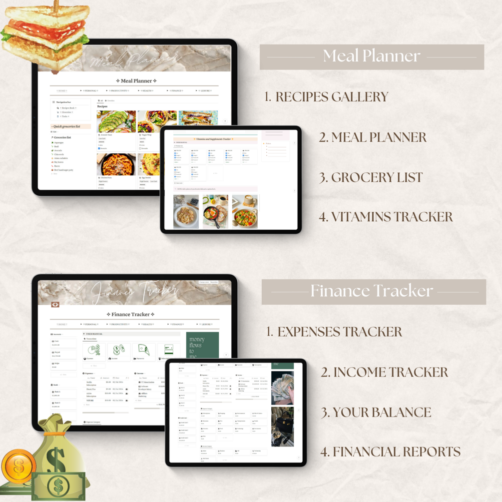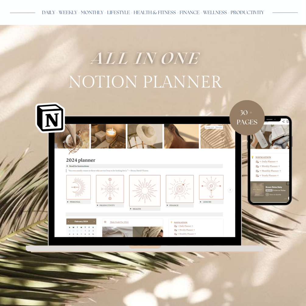 Introducing the All-In-One Notion planner - where aesthetic design meets functionality! Whether you're setting goals, tracking your lifestyle, or just staying organized, this planner has you covered. Access and personalize effortlessly across devices to keep your life on track.
