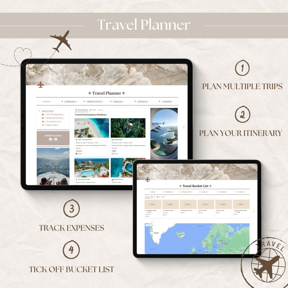 Notion Planner - your ultimate companion for a simplified and enriched daily life. With health tracking, financial management, and goal-setting tools, stay organized and focused with ease. Elevate your life today with this simple and versatile Life Planner.